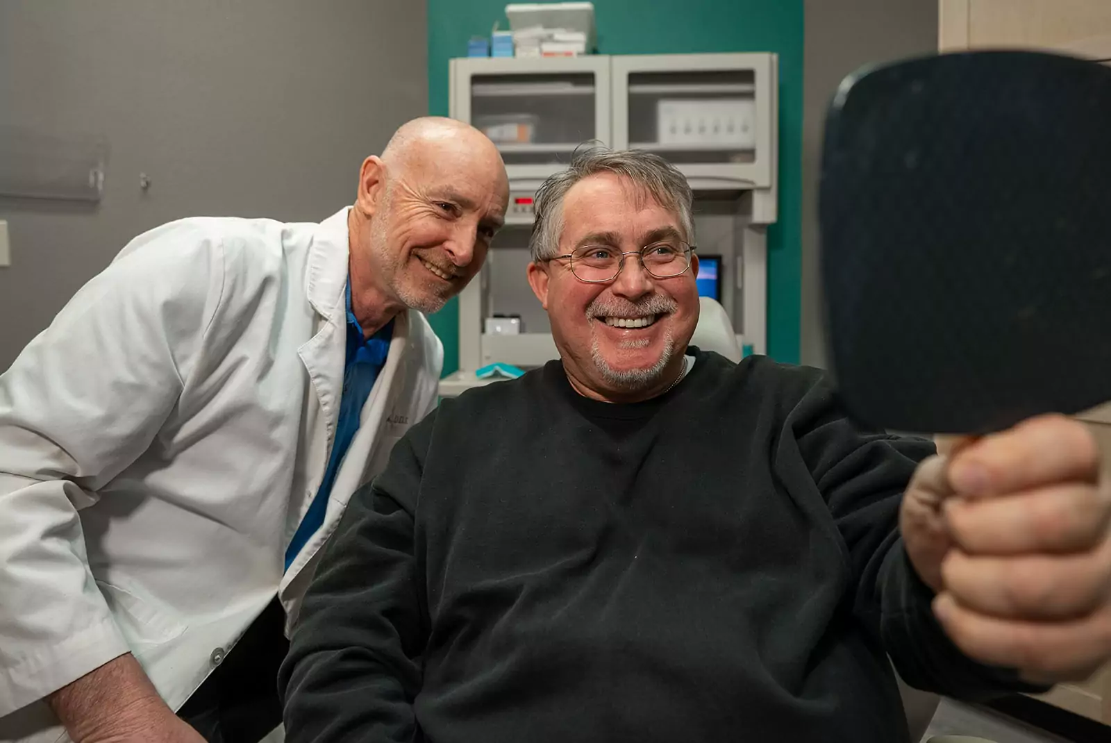 Patients leave our office with a brand-new, fully functional smile in as little as one to two days. Whether you choose implant-retained dentures, an implant bridge, or our advanced All-on-4/6 solution, your results are designed to look natural, feel comfortable, and restore lasting confidence.